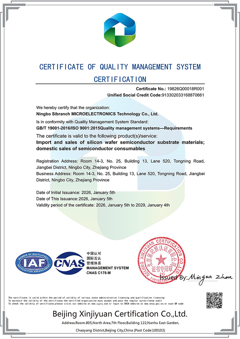 Founded in 2006 by material science and engineering scientist in Ningbo, China , Sibranch Microelectronics aims to provide semiconductor wafer and service in China and all over the world. Our main products including standard silicon wafers SSP (single side polished),DSP (Double side polished), test silicon wafers and prime silicon wafers , SOI (Silicon on Insulator) wafer and coinroll wafers with diameter up to 12 inch, CZ/MCZ/FZ,Neutron radiation, almost any orientation, off cut, high and low resistivity,ultra flat, ultra thin, thick wafers etc.